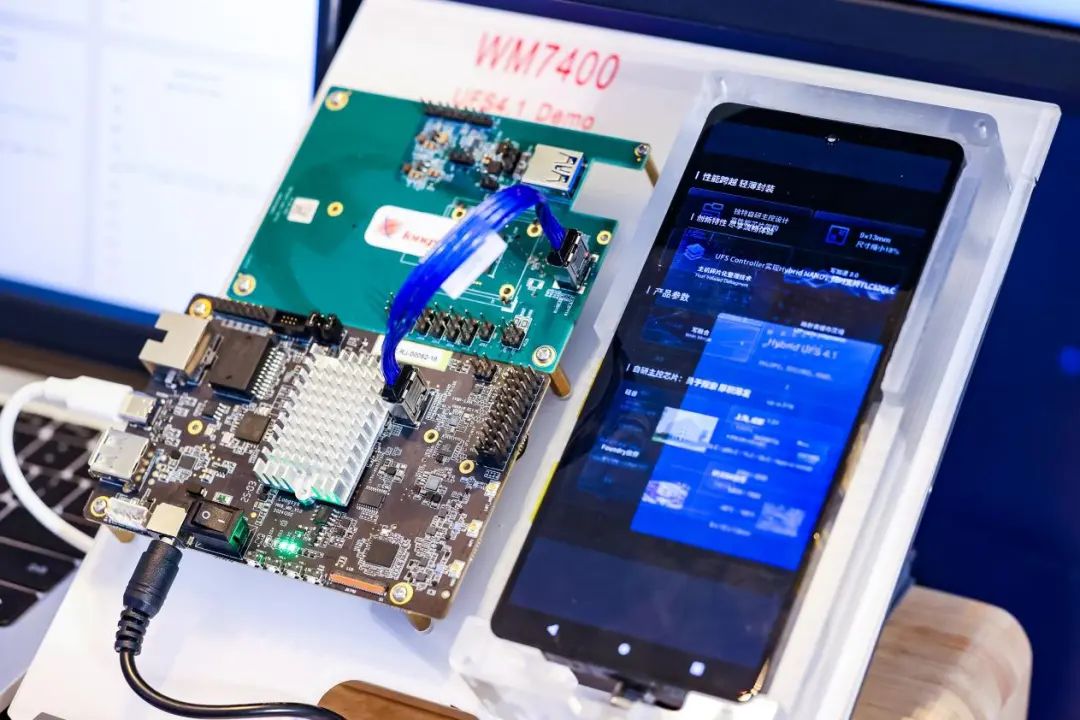 尤其是搭载了自主研发 WM7400 主控芯片的UFS 4.1方案,顺序读取速度达4350MB/s,随机写入速度达750K IOPS,最高容量达2TB,实现了“满血的UFS 4.1性能”,为AI 手机、智能汽车等端侧 AI 产品在复杂应用场景下实现实时决策提供有力保障。
